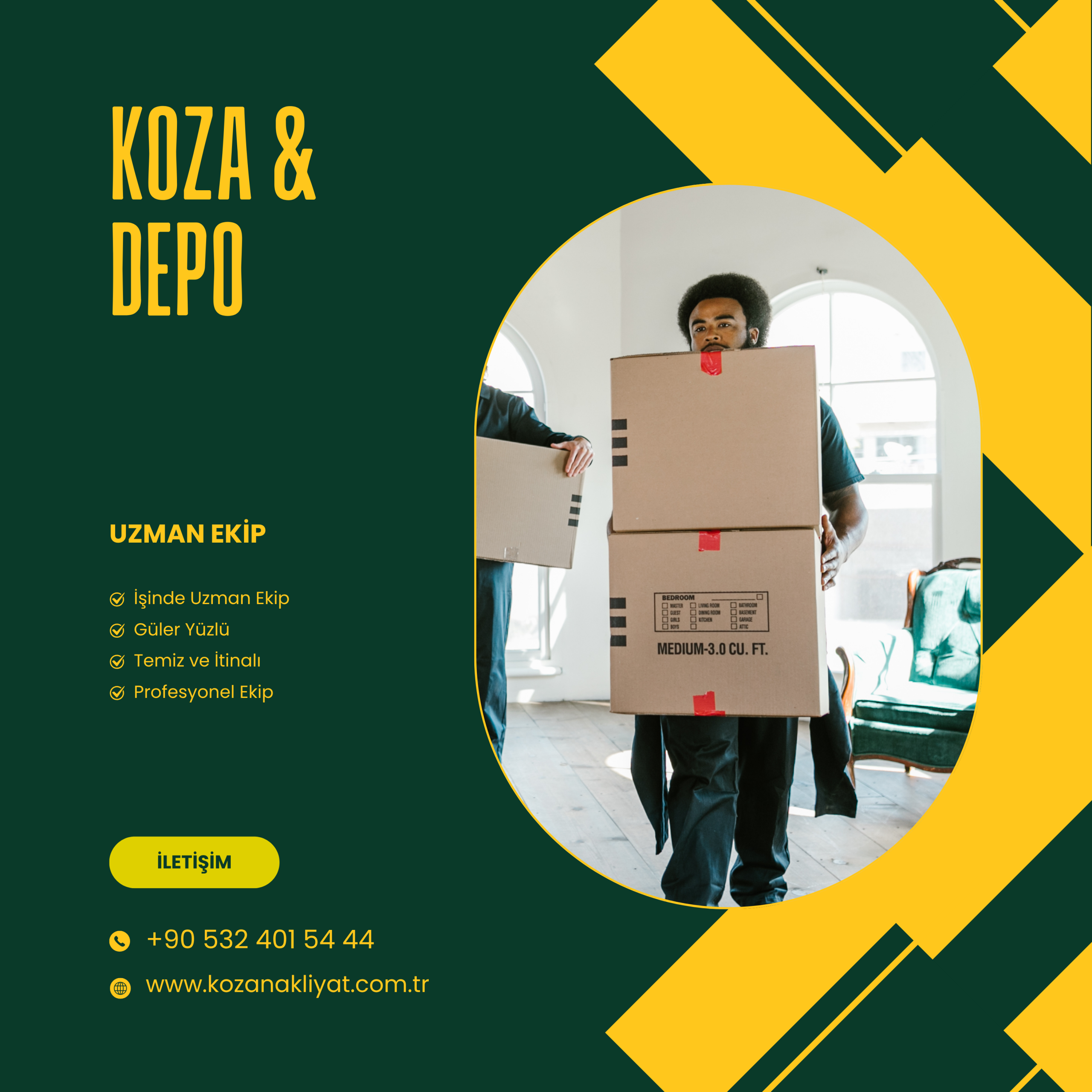 Profesyonel Ekip: Koza’nın deneyimli ve uzman ekibi, eşyalarınızı özenle taşır ve yeni adresinize yerleştirir.